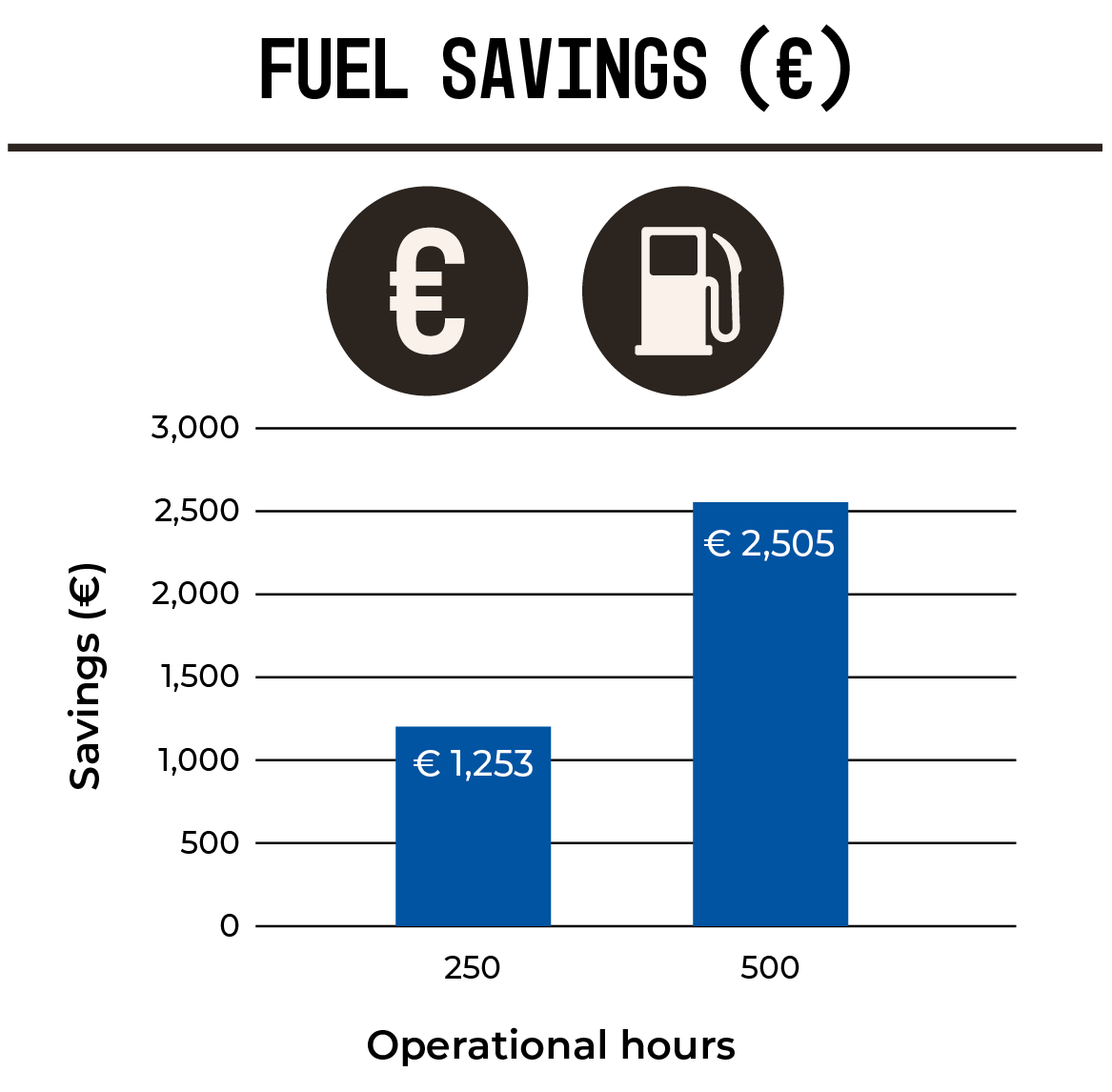 According to tests conducted by DLG in the field, 3 L/H fuel savings compared to VF competitor tyre. Assumption: Diesel price 1.67 €/litre.